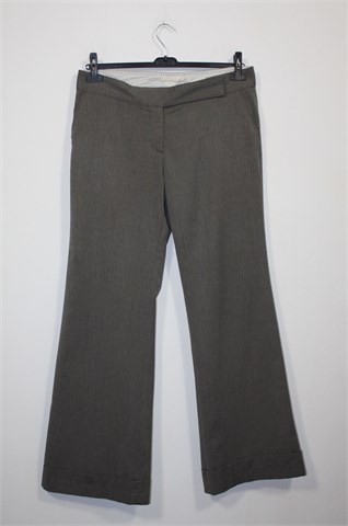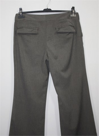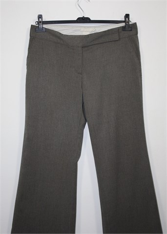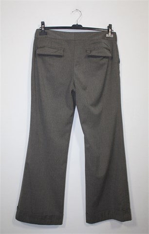 Old Navy hlače smeđe-crne boje sa sitnim prugastim uzorkom riblje kosti. Prednji cif i kopčanje, prednji bočni i stražnji skriveni džepovi sa preklopom. Šire nogavice, blago rastezljive.
