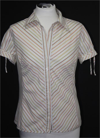 Old navy košulja sa kratkim rukavima, bijele boje sa prugama. Lagana i ratezljiva, strukirana.