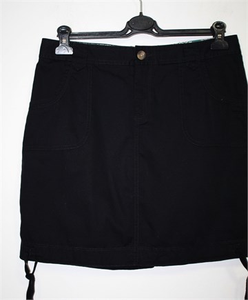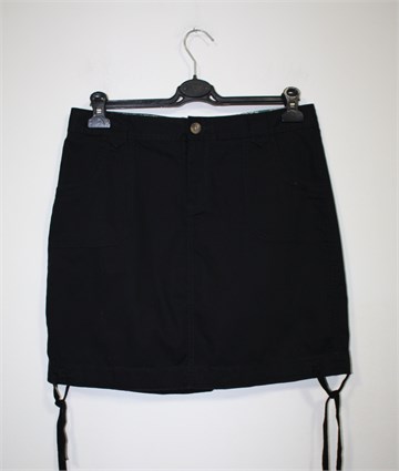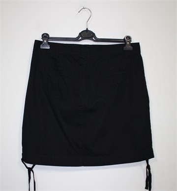 Old Navy pamučna suknja crne boje. Prednji cif i kopčanje, pasica za remen. Prednji i stražnji džepovi, bočne vezice na dnu suknje (mogu se po želji stegnuti). Tanji pamuk.