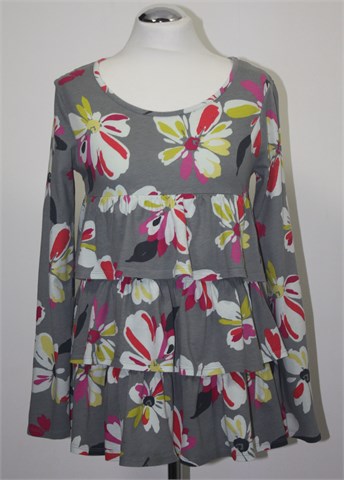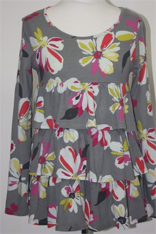 Old Navy majica sa dugim rukavima, sive boje sa cvjetnim printom i volančićima. Mekan i blago rastezljiv pamuk.