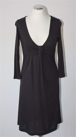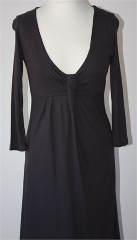 Olsen haljina sa dugim rukavima, tamno sive boje. Materijal iznad prsiju je dupli, rezana ispod prsiju i prema dnu se blago širi od tijela. Tanji, mekan i rastezljiv materijal.