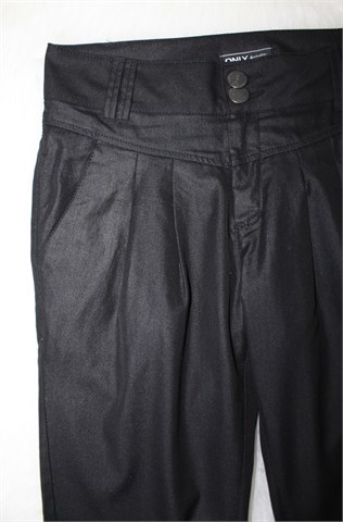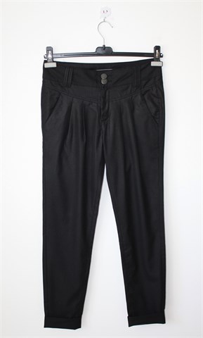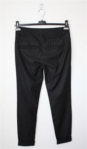 Only chino hlače crne boje sa diskretnim sjajem na materijalu, ušitci sa prednje strane. Prednji cif i kopčanje, pasica za remen. Prednji bočni, stražnji skriveni džepovi. Mandžete na krajevima nogavica (tvornički podvinute), blago rastezljive. Oznaka modela - Lala Classic Chino Pants