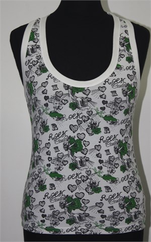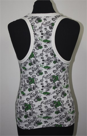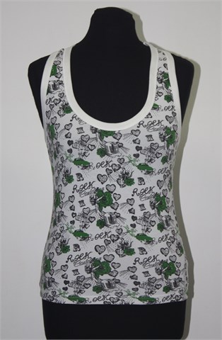 Only topić bijele boje sa printom (zeleno-bijelim). Mekan i rastezljiv materijal.