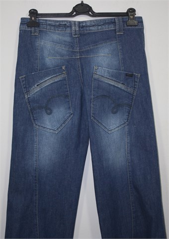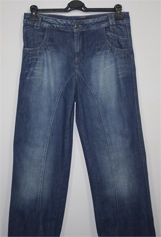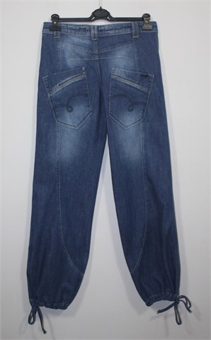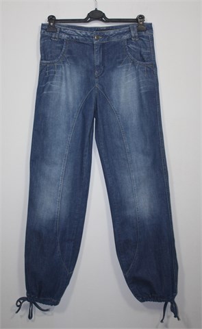 Only traper hlače srednje plave boje, mjestimično ispranog i iscufanog izgleda - model se zove Cover Baggy Venus Jeans Rea. Prednji cif i kopčanje, pasica za remen. Prednji bočni, stražnji niski i dublji džepovi. Prošivi na nogavicama, na dnu nogavica vezanje sa vezicama. Blago rastezljive.