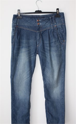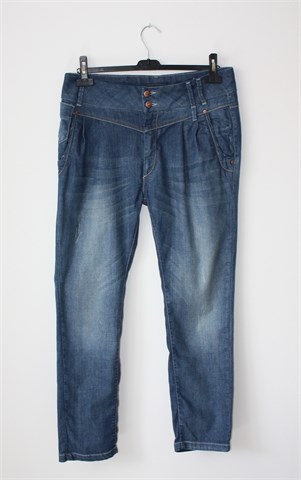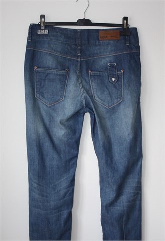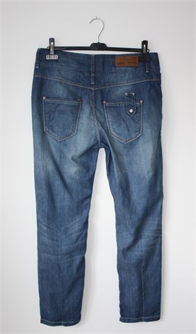 Only traper hlače plave boje, mjestimično ispranog i iscufanog izgleda (tvornički used look). Prednji cif i kopčanje, pasica za remen. Prednji i stražnji džepovi. Rastezljive. Oznaka modela - Lala Ankle Jeanos Rea (vidjeti mjere za dužinu). Na dnu nogavice su uske (nisu za jače listove).