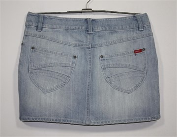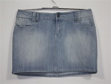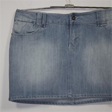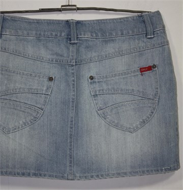 Only kratka suknja od trapera svijetlo plave boje, mjestimično ispranog izgleda (tvornički used look). Prednji cif i kopčanje, pasica za remen. Prednji i stražnji klasični džepovi.