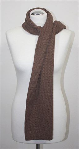 Oriflame šal smeđe-bež boje sa retro printom. Dugačak, mekan i rastezljiv.