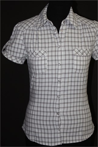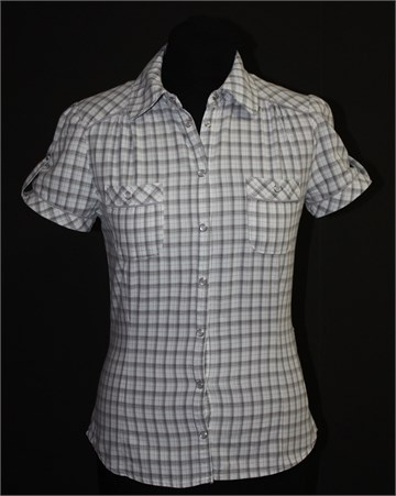 Orsay košulja sa kratkim rukavima, bijele boje sa prugastim uzorkom (mjestimično su pruge šljokavo srebrne). Prednje kopčanje sa sedefastim drukerima, džepići sa drukerima na prsima. Strukirana, nerastezljiva.