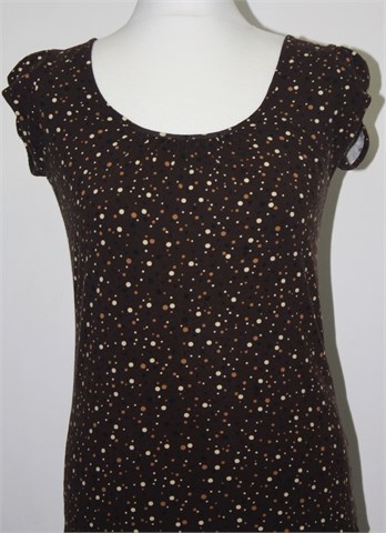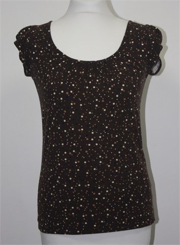 Orsay majica sa kratkim rukavima, tamno smeđe boje sa printom točkica. Mekana i rastezljiva.