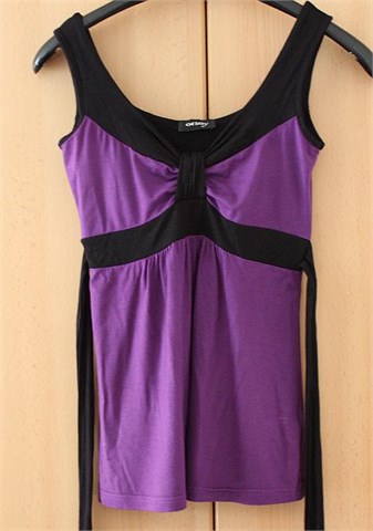 Sastav: 96% viskoza 4% elastin Na majčici piše veličina S. Rastezljiva. Vizualno rezana ispod grudi i širi se prema dolje. Mekan i rastezljiv materijal. Vrpca za vezanje.