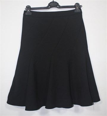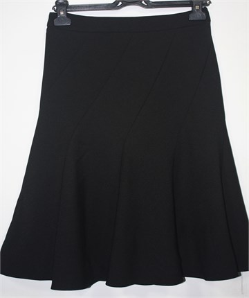 Orsay suknja crne boje sa prednjim i stražnjim kosim faldama. Lagana i blago rastezljiva, podstavljena. Bočni kosi cif.