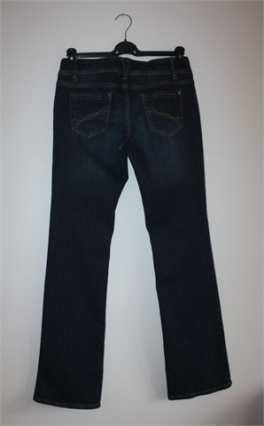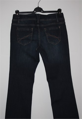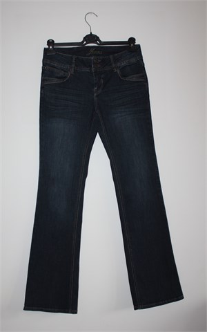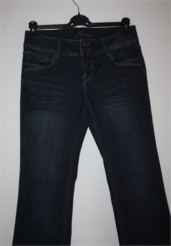 Orsay traper hlače, tamnije plave boje mjestimično ispranog izgleda (tvornički used look). Prednji cif i kopčanje, pasica za remen. Prednji i stražnji džepovi.