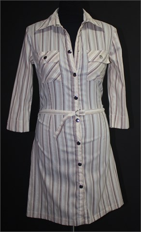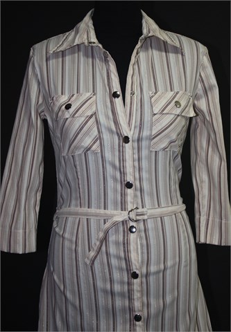 Orsay dugačka košulja/tunikasvijetlo bež boje sa smeđim i blago šljokavim prugama. Prednje kopčanje na drukere, džepovi na prsima, vezanje u struku. Rukavi su poludugi. Rastezljiva, lijepo se formira po tijelu.