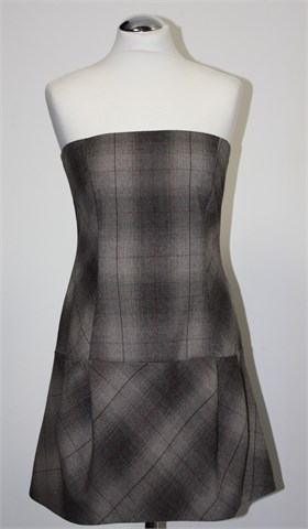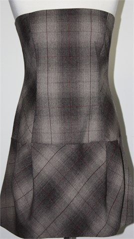 Orsay tunika/kratka haljina od tanjeg i mekanog štofa, prošarano smeđe boje sa prugastim uzorkom na materijalu (vidljivo na slikama). Bez naramenica, odlična za slojevito oblaćenje. Stražnji cif, podstavljena.