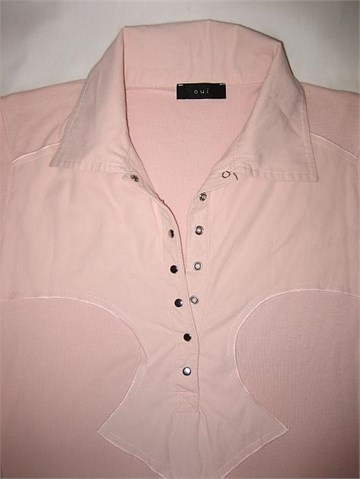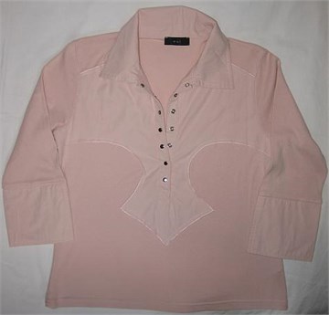 Poludugi rukavi (prorezi na mandžeti rukava), ukrasi na prednjoj strani majice. Vrlo mek i rastezljiv pamuk.