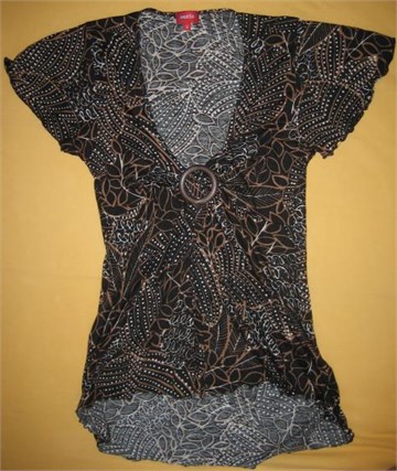 Izuzetno mekan i rastezljiv pamuk. Kratki i lepršavi rukavići. Dekoltirana, stegnuta na grudima. Lepršava i šira u donjem dijelu. Prednja strana kraća, otraga dulja.