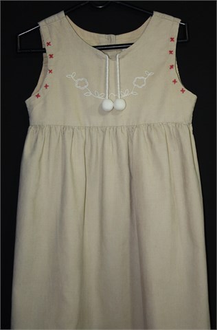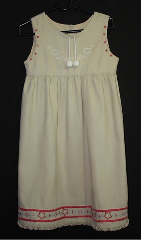 Oviesse girls haljina od samta, svijetlo bež boje sa našivenim aplikacijama. Bez rukava, stražnje kopčanje sa gumbima (samo u gornjem dijelu). Tanji i mekan samt, podstavljena u gornjem dijelu.