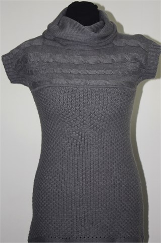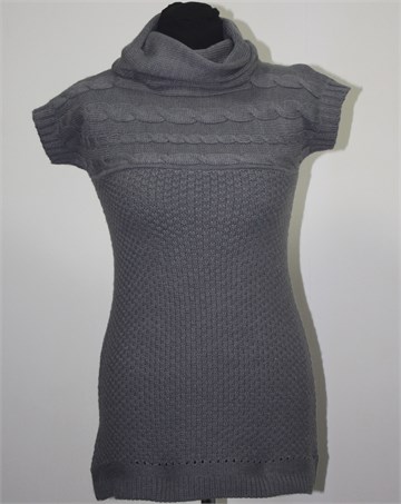 Palomino (C&A) pletena tunika sive boje, kratki rukavi i dolčevita ovratnik. Mekano i blago rastezljivo pletivo. Na slici izgleda kratko jer je slikana na lutki ženske veličine S/M.