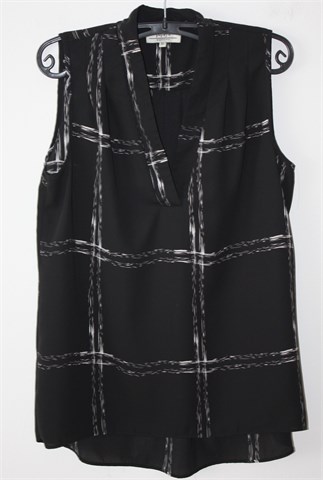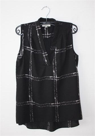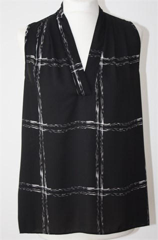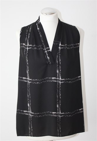 Papaya Weekend bluza bez rukava, crne boje sa bijelim uzorkom (vidljivo na slikama). Tanja i lagana, vrlo blago rastezljiva. Duža sa stražnje strane (vidjeti mjere).