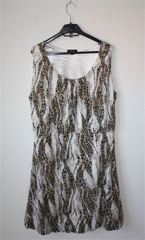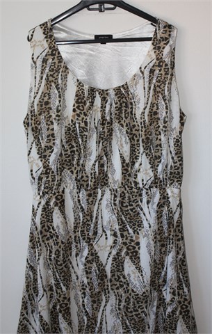 Paprika haljina bez rukava, šareni print (boje i uzorak printa vidljivi na slikama). U struku gumica (prilagodljiva širina), cijela podstavljena (sitnija oštećenja na podstavi). Blago rastezljiva.