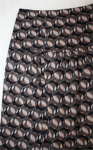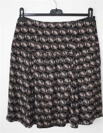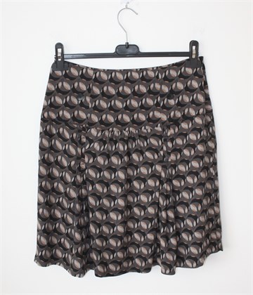 Part Two suknja tamno sive boje sa printom (boje i uzorak printa vidljivi na slikama). Bočni cif, podstavljena.