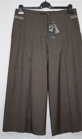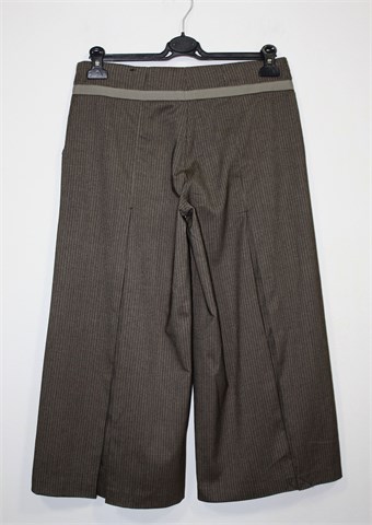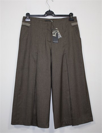 Pepper.corn poluduge hlače od štofastog materijala, nogavice su široke pa pomalo djeluju kao suknja-hlače. Boja je smeđe-bež sa uzorkom na tkanini.