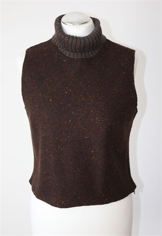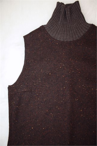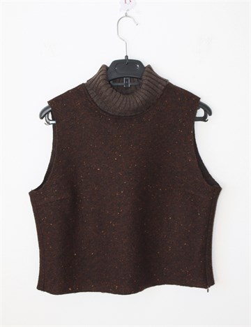 Personal Affairs vesta/prsluk bez rukava prošarano smeđe boje (vidljivo na slikama). Dolčevita ovratnik, bočni cif. Topli, mekan i mucast, idealan za slojevito oblaćenje. Kraći i rastezljiv.