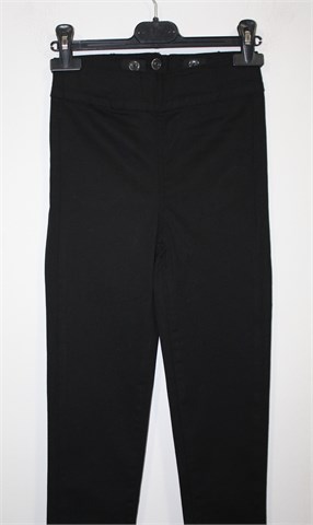 Pieces hlače-tajice crne boje, skinny model. Visoki struk (dublji model), stražnji cif i gumbić. Stražnji džepovi. Unutar pasice regulacija širine struka (bočne gumice i gumbić). Blago rastezljive. Model za vitke i visoke djevojčice (vidjeti mjere).