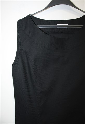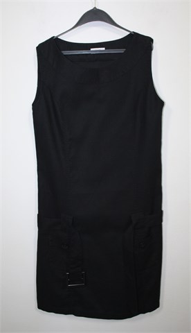 Pimkie haljina bez rukava, crne boje sa diskretnim uzorkom na tkanini. Pasica za remen sa pripadajućim remenom (može se skinuti), bočni džepovi. Bočni cif, prednji i stražnji ušitci (blago strukirana). Čvrst pamuk, nije rastezljiv.