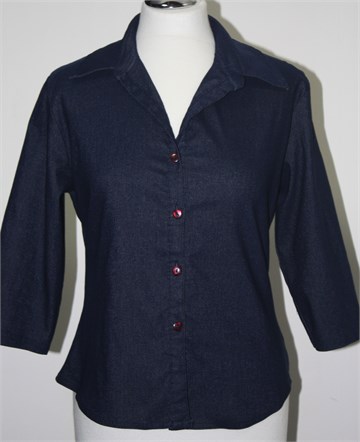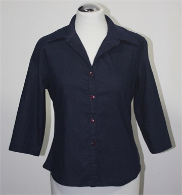 Pimkie košulja sa poludugim rukavima, plave boje. Prednje kopčanje sa tamno crvenim gumbima. Materijal djeluje kao traper samo je puno tanji i elastičniji.