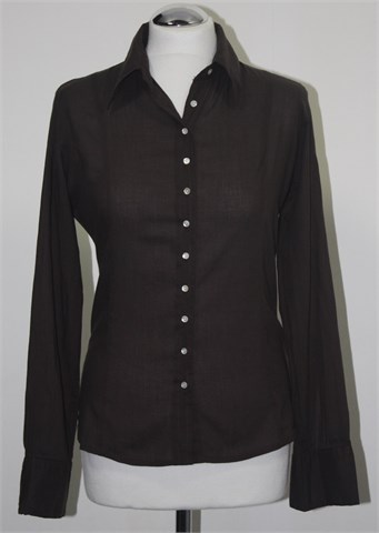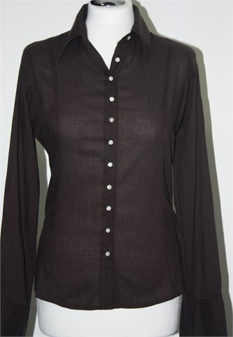 Pipeline košulja sa dugim rukavima, tamno smeđe boje. Vrlo lagan i prozračan pamuk, idealna za toplije vrijeme ili za slojevito oblaćenje. Prednji i stražnji ušitci, klasično kopčanje (ukrasni gumbići).