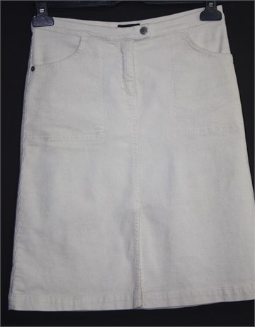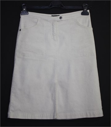Playlife suknja od tankog i mekanog samta, svijetlo bež boje. Prednji cif i kopčanje, prednji dublji džepovi. Rastezljiva, prednji rasporak.