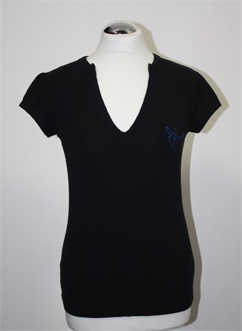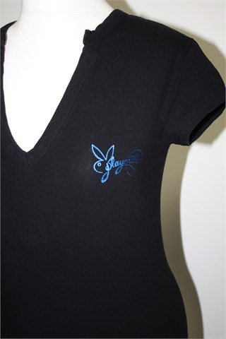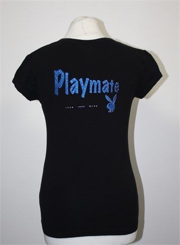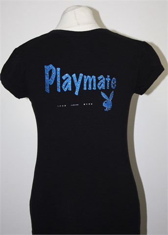 Playmate majica sa kratkim rukavima, crne boje. Print sa prednje strane, sa stražnje strane print i aplikacije (vidljivo na slici). Mekan i rastezljiv pamuk.