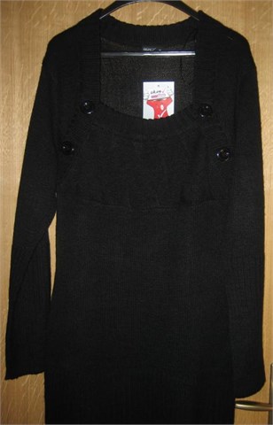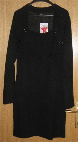 Prekrasna pletena haljina crne boje. Gornji dio djeluje kao bolero jer je vizualno ukrasnim gumbima "odvojen" od ostatka haljine. Dio iznad grudi sa naborima. Jako mekana i rastezljiva.