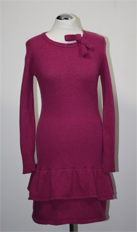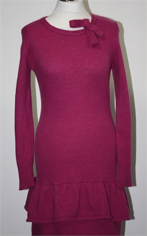 Prekrasna pletena haljina/tunika prošarane ciklama roze boje. Na dnu dva volančića, vezanje na ovratniku (može se nositi otpušteno ili zavezati u mašnicu kao na slici). Pletivo je srednje debljine, toplo i rastezljivo. Haljina je made in Croatia :)