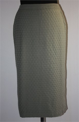Pletena suknja sivo-svijetlo zelene boje (lijepa neutralna pastelna boja) sa gumicom u struku (dosta rastezljivo). Uzorak u pletivu (vidljivo na slici). Mekana i rastezljiva, podstavljena.