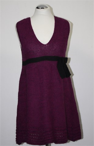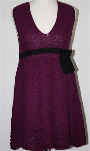 Pletena tunika bez rukava, tamnije zagasito ljubičaste boje. Mekano, mucasto i rastezljivo pletivo.