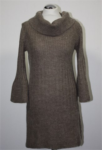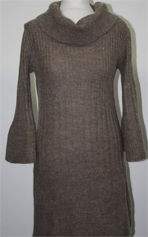 Pletena tunika sa poludugim rukavima, prošarano smeđe-bež boje. Dolčevita ovratnik, toplo i mucasto pletivo. Rastezljiva.