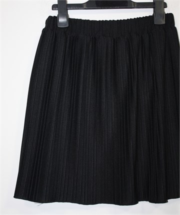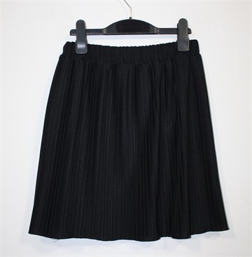 Plisirana suknja crne boje sa gumom u struku (prilagodljiva širina - vidjeti mjere). Tanji i rastezljiv materijal. Podstavljena.