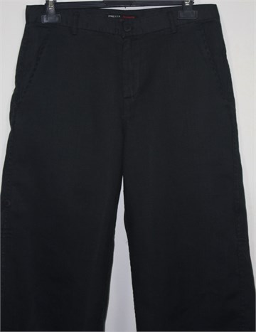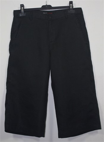 Pretty Woman poluduge hlače isprano crne boje (tvornički). Prednji cif i kopčanje, pasica za remen. Prednji bočni džepovi. Nogavice se mogu nositi i kao kraće (unutarnja vezica i vanjski gumbić). Lagan i čvrst materijal.