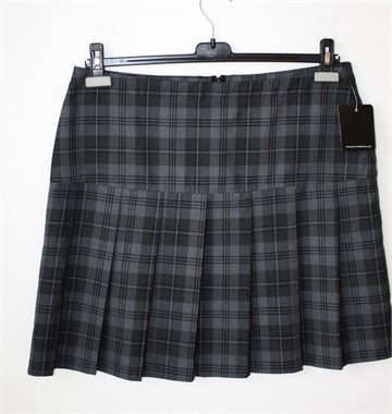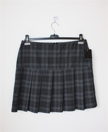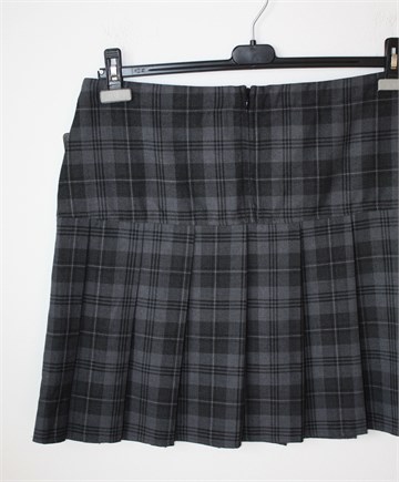 Price & Buckland (schoolwear) suknja sive boje sa uzorkom (boje i uzorak vidljivi na slikama). Stražnji cif, falde sa prednje i stražnje strane. Nije rastezljiva.