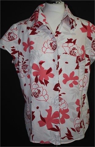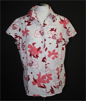 Promiss košulja sa kratkim rukavima, bijele boje sa šarenim cvjetnim printom (boje i uzorak printa kao na slikama). Prednje skriveno kopčanje, prednji i stražnji ušitci (blago strukirana). Čvrst i nerastezljiv materijal.
