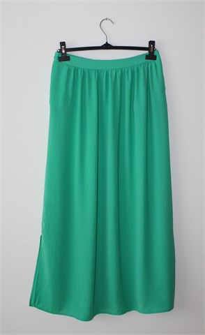 Promod dugačka/maxi suknja zelene boje. Gumica u struku (sa stražnje strane pasice), prednji bočni džepovi. Bočni prorezi sa obje strane. Tanji i lagan materijal.