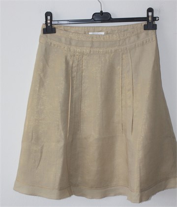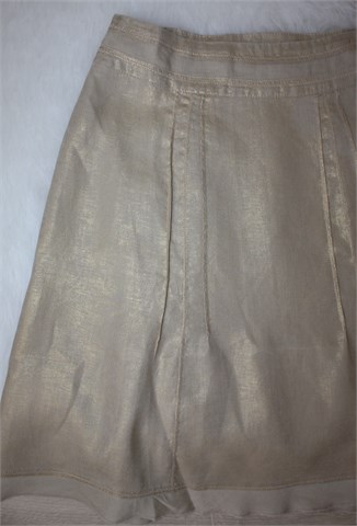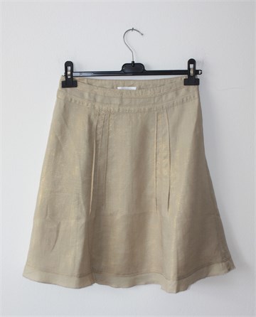 Promod suknja bež boje sa mjestimičnim zlatnim sjajem. Bočni cif, ukrasni prošivi sa prednje i stražnje strane. Tanji, lagan i čvrst materijal - nije rastezljiv.
