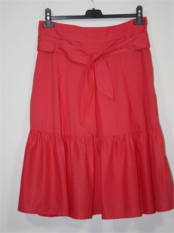 Promod suknja midi dužine, koraljno roze boje. Bočni cif, pasica za remen sa pripadajućim remenom (može se skinuti). Tanji, lagan i prozračan pamuk.