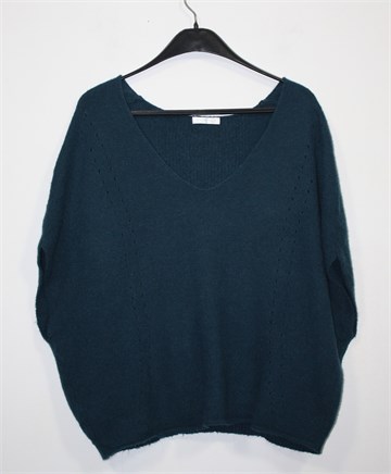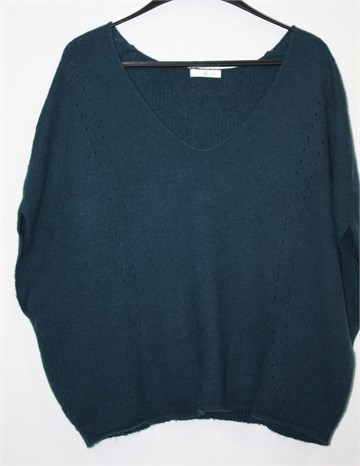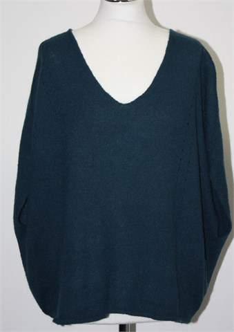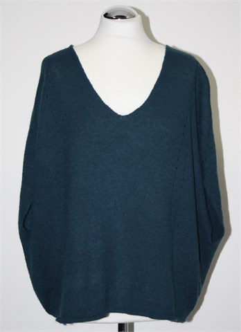 Promod vesta bez rukava, tamnije petrolej boje. Diskretan uzorak na pletivu, blago stegnuta pri dnu pasice. Mekano, mucasto i rastezljivo pletivo. Oversized model, širi oko tijela.