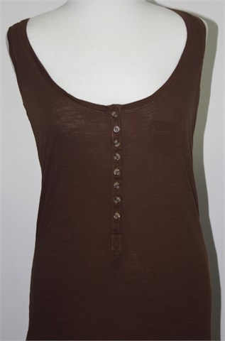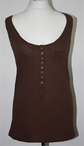 Pull and Bear topić smeđe boje sa prednjim gumbićima i malim džepićem. Lagan i tanji pamuk, rastezljiv.
