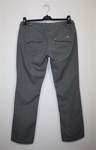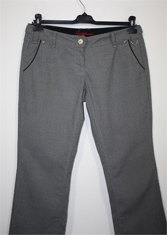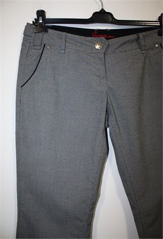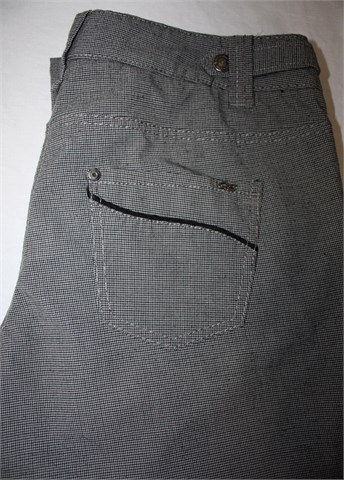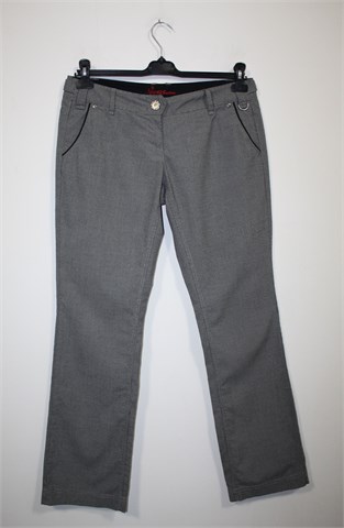 QS by S. Oliver hlače crno-sivo-bijele boje (sitan uzorak). Prednji cif i kopčanje, pasica za remen. Prednji bočni, stražnji klasični džepovi. Tanje i lagane.
