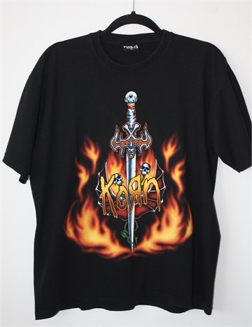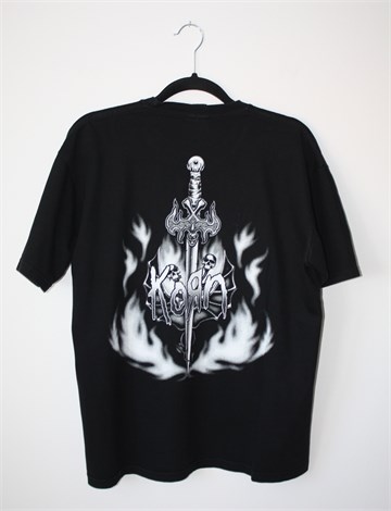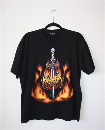 RED majica crne boje sa kratkim rukavima. Print sa prednje i stražnje strane (Korn - vidljivo na slikama). Blago rastezljiva.