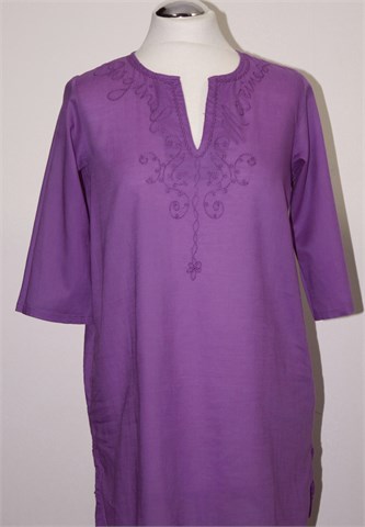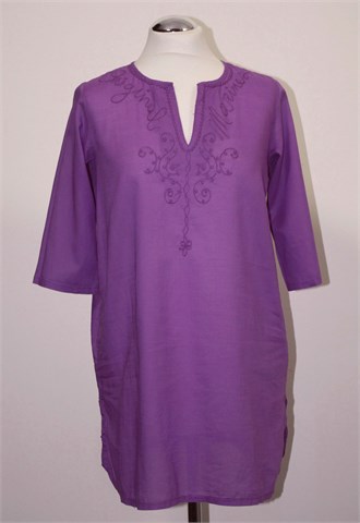 Race Marine bluza/tunika sa poludugim rukavima, svijetlo ljubičaste boje (nešto zagasitija boja nego na slici). Sa prednje strane aplikacije od konca, mali bočni prorezi. Tanji, lagan i prozračan pamuk.